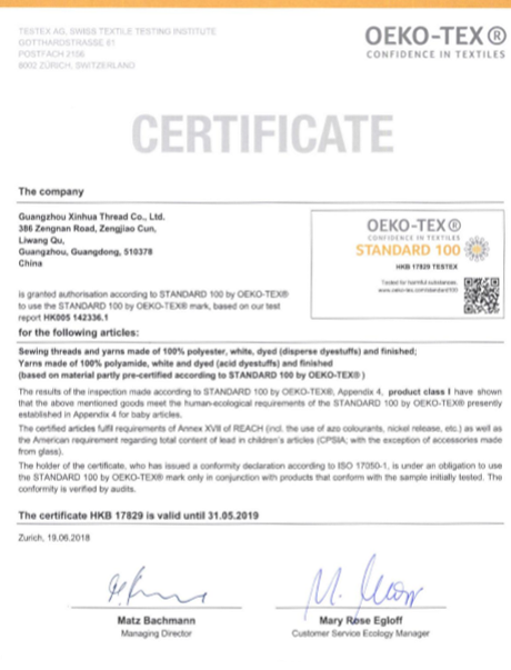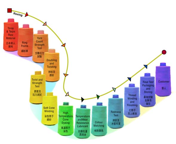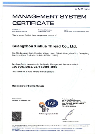 广州新华线业有限公司是由香港新中港国际有限公司于1993年投资创办的专业生产缝纫线的外资独资经营企业。公司位于广州市南面,芳村区龙溪大道旁(芳村体育馆对面),离广州地铁一号线坑口站只有1公里,近邻广州环城高速公路,交通快捷、便利,能快速到达珠江三角洲地区和广东省西南各地。 公司的注册资本达5225万港元。占地面积18000平方米,员工170多人。是一间环保达标、广州地区花园式单位的绿色工厂,并通过了国际质量认证机构ISO9001:2015质量体系认证。公司主要生产超千种颜色、各种纱支、适用于各类制衣用的优质缝纫线、弹丝线,年产量达2500吨以上,年产值约9000万元。内销客户约2000个,主要分布在珠江三角洲,客户服务部每天接收客户传真及电话订单约300份,每天接、复客户电话约500个左右。每天早上6:00有10辆货车从公司出发负责送货,每天送货客户数量超过200个。出口到香港及世界各地。